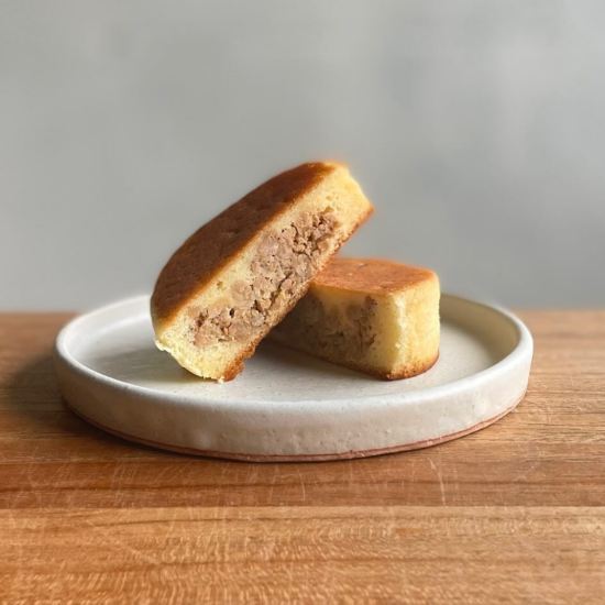 甘さ控えめのぼうろ生地に、中には甘辛い豚そぼろがたっぷり!
